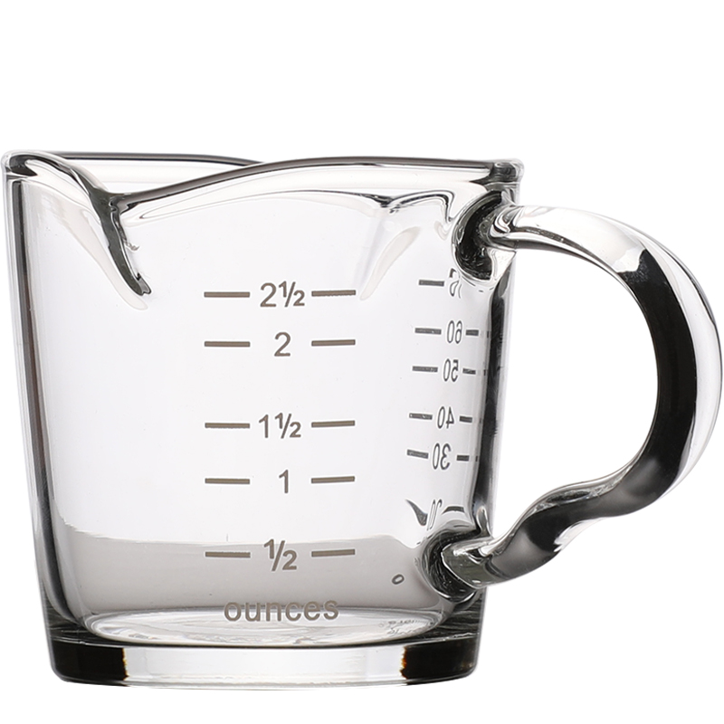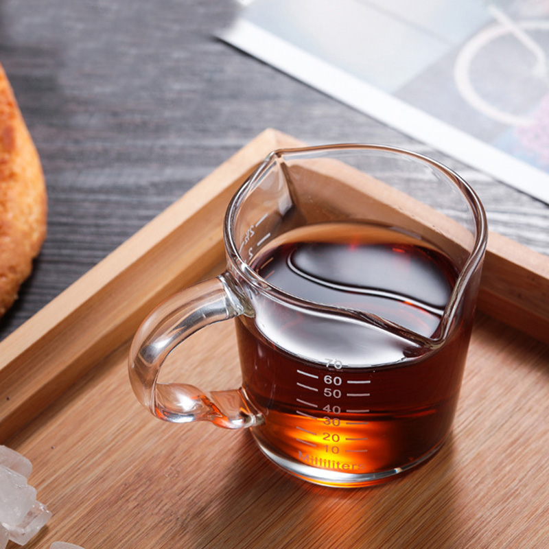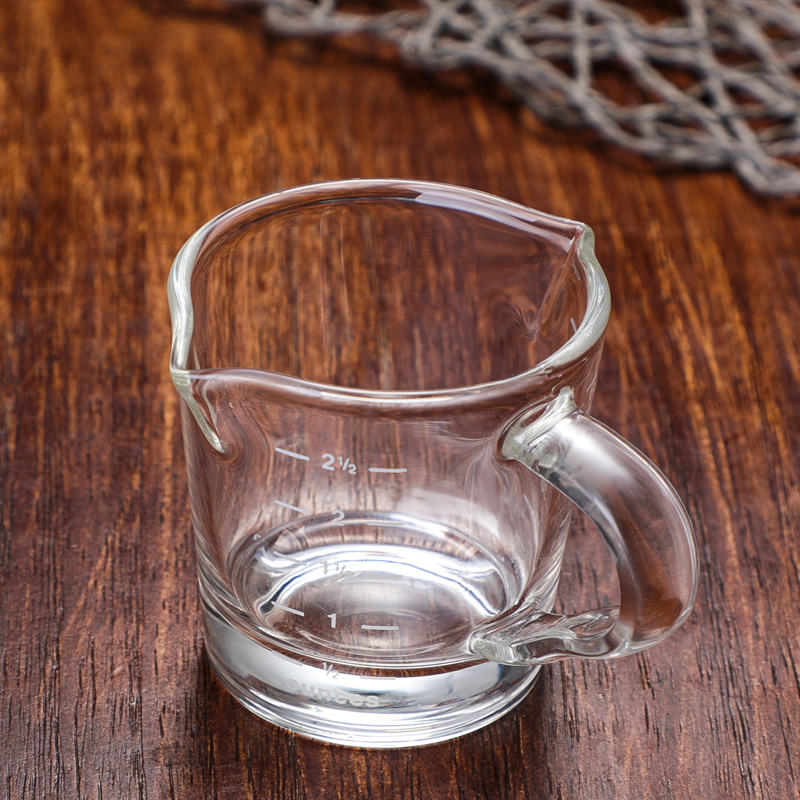 Introducing our Double-Mouth Serving Cup, made from high borosilicate heat-resistant glass. This stylish and classic cup is perfect for pouring espresso or serving your favorite drink. The plain pattern and 2.3oz capacity make it a versatile and practical choice for your coffee or tea needs.