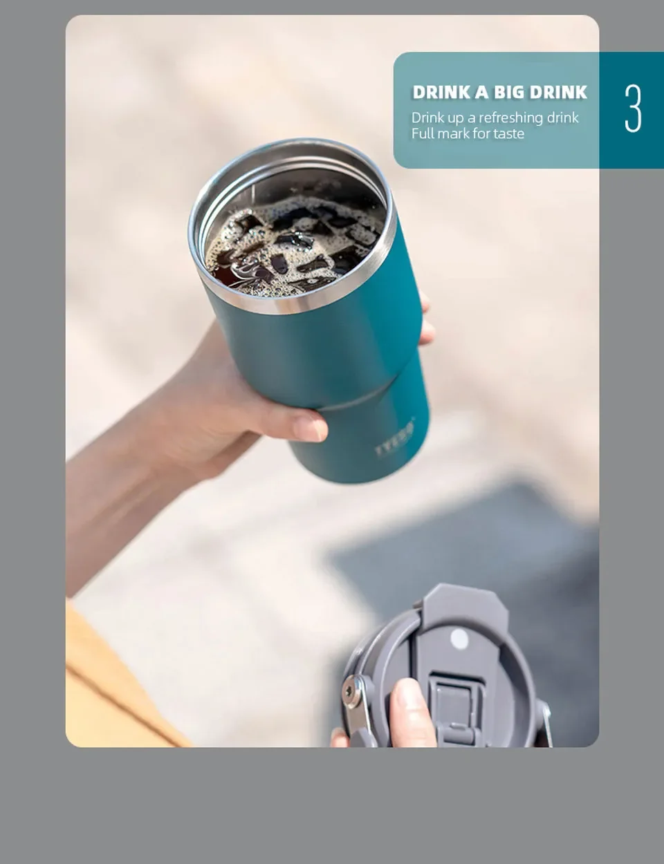 The Tyeso Coffee Cup offers both style and functionality. Crafted from durable 304 stainless steel inside and out, with a lid made from PP plastic and silicone, this cup is built to last. Its wide-mouth design makes brewing and cleaning a breeze, while the handle allows for easy carrying. The cup's exquisite handle can even be placed on the lid when not in use. With its small sip design, you can enjoy your coffee or tea without the worry of scalding. Whether you're at home, in the office, or on the go, the Tyeso Coffee Cup is the perfect companion for your favorite beverages.